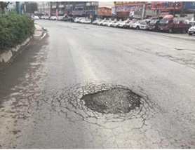 裂缝:沥青砼路面建成初期会产生不同形式的裂缝,随着表面水分的侵入,会使路面基层至路面的承载里下降,加速沥青路面的破坏。