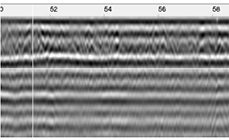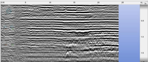 路面无病害的情况:利用探地雷达检测时,雷达剖面图上波形平缓、规则,无杂乱反射,路面分层同相轴连续。
