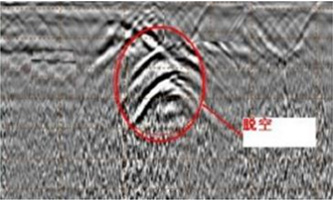 含水脱空病害区域顶部反射与激发电磁波的香味相反;并且含水脱空剖面图中具有较强的多次波存在,对脱空区域下面信号存在较强干扰。