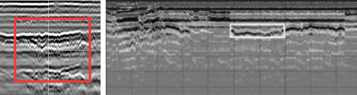 | 徕卡DS2000探测图像 | 结构层密实 | 结构层不密实 |